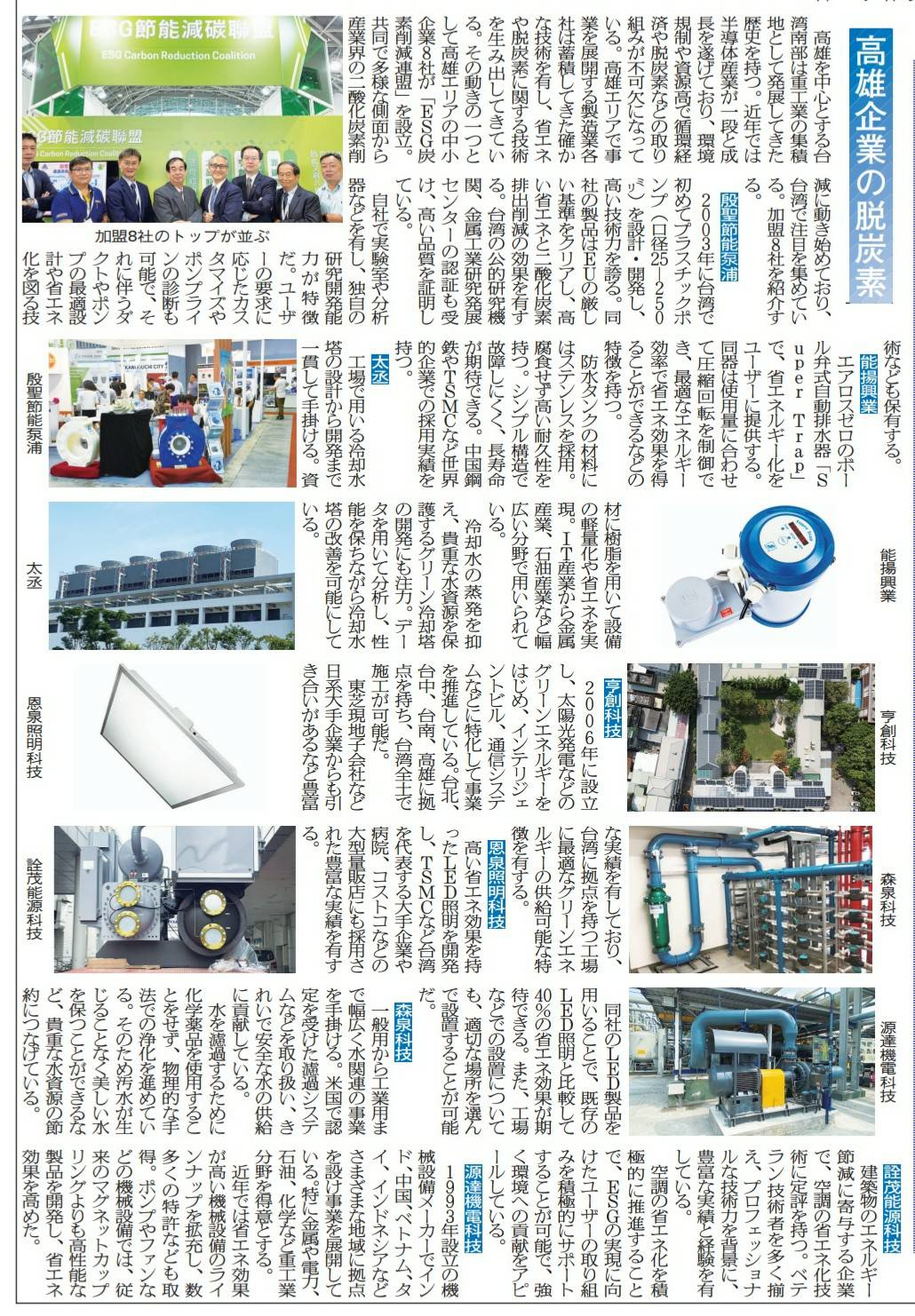 11/3-11/5在高雄展覽館舉行的「TASS 亞洲永續供應 循環經濟會展」中,「ESG節能減碳聯盟」以團隊型態服務客戶,提供一站式節能減碳全方位解決方案。會展期間,日本「產業新聞」特別至攤位進行訪問,並在日本刊出大篇幅報導ESG節能減碳聯盟各家專長及節能產品!
